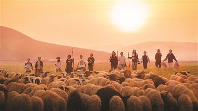 落日時分,《燃燒的月亮》女嘉賓們集體趕羊回羊圈。
