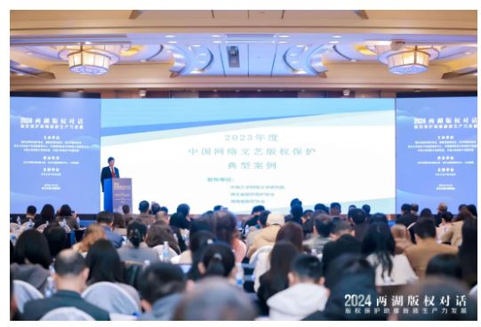 2024年11月22日,2024兩湖版權對話在武漢隆重開幕,中南大學網(wǎng)絡文學研究院院長歐陽友權教授在會上發(fā)布2023年度中國網(wǎng)絡文藝版權保護典型案例。本次活動由湖北省版權保護協(xié)會、湖南省版權保護協(xié)會、長沙市版權協(xié)會、武漢大學知識產(chǎn)權高級研究中心、中南財經(jīng)政法大學知識產(chǎn)權研究中心、中南大學網(wǎng)絡文學研究院及中南大學知識產(chǎn)權研究院等機構聯(lián)合主辦,武漢華著科技有限公司、馬欄山版權服務中心與小米集團共同承辦。該版權對話圍繞“版權保護助推新質生產(chǎn)力發(fā)展”主題,設立中國網(wǎng)絡文藝版權保護典型案例專場發(fā)布活動。