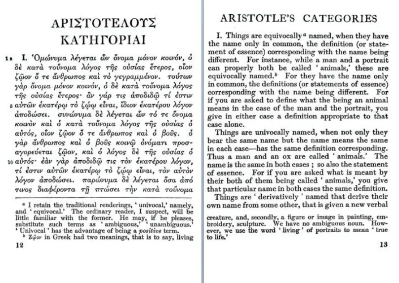 亞里士多德《工具論》之《范疇篇》(“The Loeb Classical Library”)