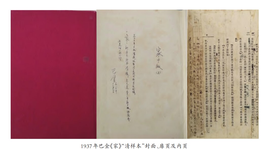 巴金是文學(xué)大家,在 1953 年面世的完整版《中國(guó)新文學(xué)史稿》中,魯迅的《吶喊》、茅盾的《子夜》、巴金的《家》都被認(rèn)為是中國(guó)新文學(xué)最為成功的一批作品,并漸漸形成了“魯郭茅巴老曹”的說法。[10]新中國(guó)成立后,巴金是繼茅盾之后的第二任中國(guó)作家協(xié)會(huì)主席,還擔(dān)任了全國(guó)政協(xié)副主席等職務(wù),為我國(guó)文學(xué)事業(yè)發(fā)展傾注了大量心血,他晚年推動(dòng)建立的中國(guó)現(xiàn)代文學(xué)館也成為中國(guó)作家協(xié)會(huì)和文學(xué)界的寶庫(kù)和窗口。2024 年 5 月 18 日,中國(guó)現(xiàn)代文學(xué)館入選第五批國(guó)家一級(jí)博物館,巴金先生提議的“現(xiàn)代文學(xué)資料館”的設(shè)想開花結(jié)果、茁壯成長(zhǎng)。一代代文學(xué)大家留給我們的不僅是卓越的藝術(shù)創(chuàng)造,還有寶貴的精神傳統(tǒng)。文學(xué)研究中作家研究是重點(diǎn),巴金研究是文學(xué)研究繞不過的一座高峰,新時(shí)代文學(xué)高質(zhì)量發(fā)展更應(yīng)從中汲取養(yǎng)分。今年是巴金先生誕辰 120 周年,讓我們回顧《家》的歷次修改,展現(xiàn)珍貴的文學(xué)檔案,以為紀(jì)念,以饗讀者。
