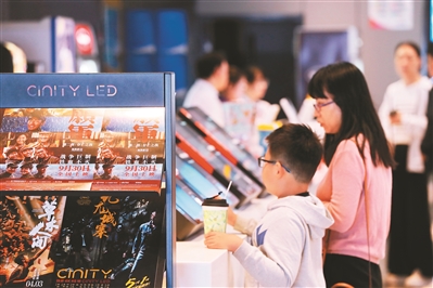 2024年10月7日,市民在浙江省嘉興市一家影城取票準備觀影。2024年國慶檔新片票房(含點映及預售)突破20億。