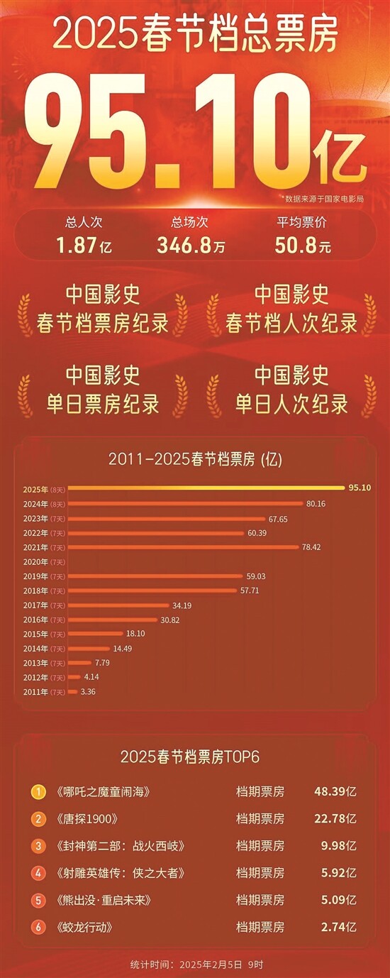 今年檔期內六部新片均為IP續作或IP改編作品,觀眾期待值拉滿,預售期創下多項票房紀錄,僅大年初一的預售票房便突破10億元。