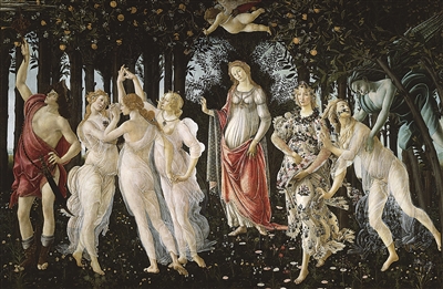 愛與美、靜與動、瞬間與永恒、藝術與哲學、運動的節奏與構圖的和諧、古典傳統的奧秘玄思與文藝復興的人文主義都在《春》的畫板上彼此對照、交相輝映。這是波提切利留給世人關于春天及真善美的無限遐想與闡釋迷宮。誠如英國藝術史學家貢布里希所言:“關于這幅迷人畫作的案卷永遠都不可能合上。”
