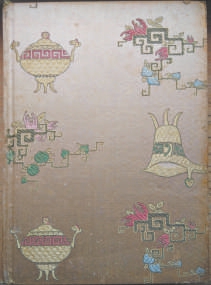 這本《獵人日記》錦面本,來自老作家徐開壘先生的舊藏,徐、黃二人是相交幾十年的報社同事。錦面本值得玩味的地方,是封面上沒有印刷書名,僅在書脊上印制了紅色凹字書名,作者、出版社等信息一概略去,上面所繡的鼎、爵、云紋、佛手、石榴等五彩圖案反向排列,看上去雍容華貴、光彩靚麗。
