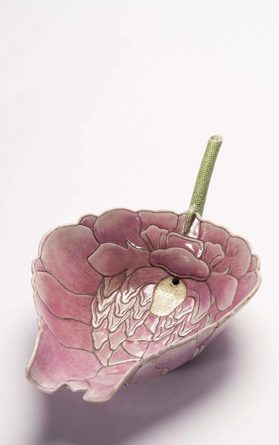 南通博物苑藏清光緒粉彩“秋操紀念”荷花形吸杯。