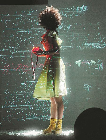 在《1033》的舞臺上,雖然影像營造的夢境是豐富且光怪陸離的,但整個(gè)劇目只有兩位演員飾演的兩個(gè)角色:女主人和她的狗狗。兩位演員非常投入,無論是肢體語言溝通還是對白互動(dòng),表情生動(dòng)、動(dòng)作絲滑、配合默契,將一位“追求夢想”的女主人和一只“善解人意”陪伴左右的寵物狗塑造得鮮活而有個(gè)性。這兩個(gè)角色在劇情推進(jìn)中相互獨(dú)立又相互輔助,不分主次,構(gòu)成了獨(dú)特的二元敘事模式。