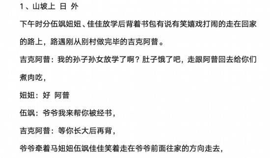 《翻山》現場的影像生產,圍繞著一個漢語寫作的劇本展開,該劇本主要簡單地書寫了每場戲的內容框架以及核心事項,人們再在此基礎上,融入個人的生活經驗,進行社會記憶的再現。