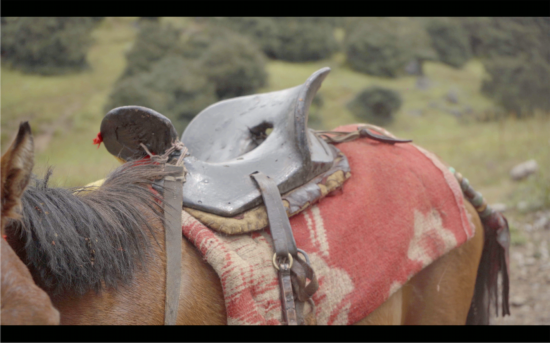 后半夜下了一點小雨,次日,羊槽子變得格外清澈、透亮,此時正是八月,夏天似乎還很漫長。一大早,沙馬伍颯跟吉克拉哈就來到村民家中借馬,“你們家的馬,可以借我們拍一下戲嗎?拍完了給你們一點借馬的錢”,而與他們交流的村民,是馬的主人,她認為她家的馬并不合適:“我們家的馬還沒有馴好,怕是勝任不了”,吉克拉哈趕忙解釋:我們不拿來騎,就是拉著它走一下,講述“一個彝族畢摩阿普(老畢摩)從別人家做完儀式回來,牽著馬路過森林”這么一段戲,就拍攝可能一分鐘不到的視頻,幾個鏡頭就完了。