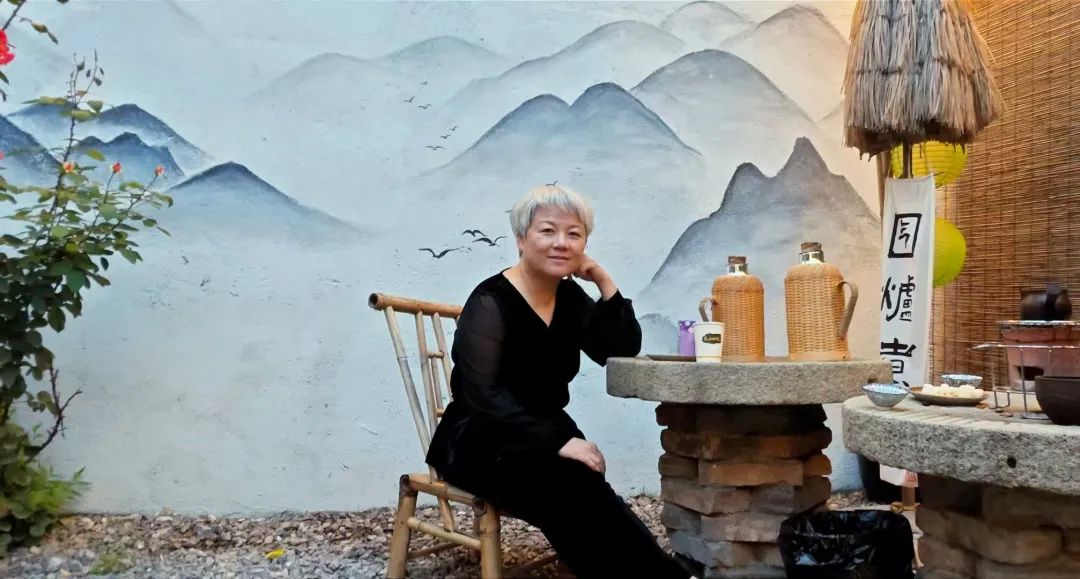 臺(tái)階旁有溪水流過,靜若處子的山間便只聽見了這水流的聲音,是歡快的一往無前的“嘩嘩”聲,偶爾有古箏名曲《云水禪心》傳來,仿若給這水流伴奏。