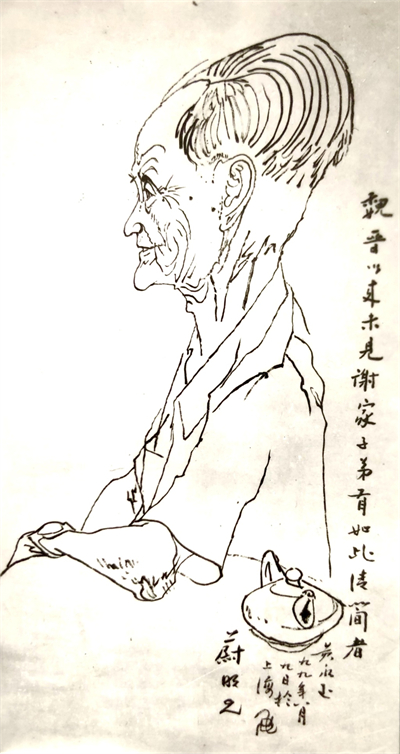 謝蔚明先生是《文匯報》的老人,晚年常來報社,有時在大堂邂逅,他襯衫口袋里會放一封黃永玉的來信,碰到就拿給我看。他們是超過半個世紀的老朋友。謝蔚明曾在文章里引過黃永玉一封信的話,讓人印象深刻:“過去,好些年才死一個老頭子,后輩人從從容容寄托哀思,寫了許多有意思的文章,沉重沉重好長一段時間。現在一串一串地來,好像激情愛國者踴躍搶購公債券,前赴后繼不堪之至,讓人靜默三分鐘都來不及,像我,就欠了許多分量很重的情……”(謝蔚明《雜七雜八集》,武漢出版社,2000年3月版,56頁)有一回,口袋里放的是黃永玉給他畫的白描像的照片,謝先生印了一些分贈朋友,也送我一張。那幅白描像畫得真是絕,一旁的題詞也絕:“魏晉以來未見謝家子弟有如此清簡者。黃永玉九九年八月八日于上海畫蔚明兄。”錢默存曾有兩句題畫詩:“畫品居上之上,化人現身外身”,移來稱贊黃永玉的這幅白描人像,再貼切不過。謝蔚明先生后來寫了篇《黃永玉贈畫》,說那幅白描像有九十公分高,只用了一刻鐘多一點時間就完成了(謝蔚明《那些人那些事》,上海遠東出版社,2006年5月版,13頁)。