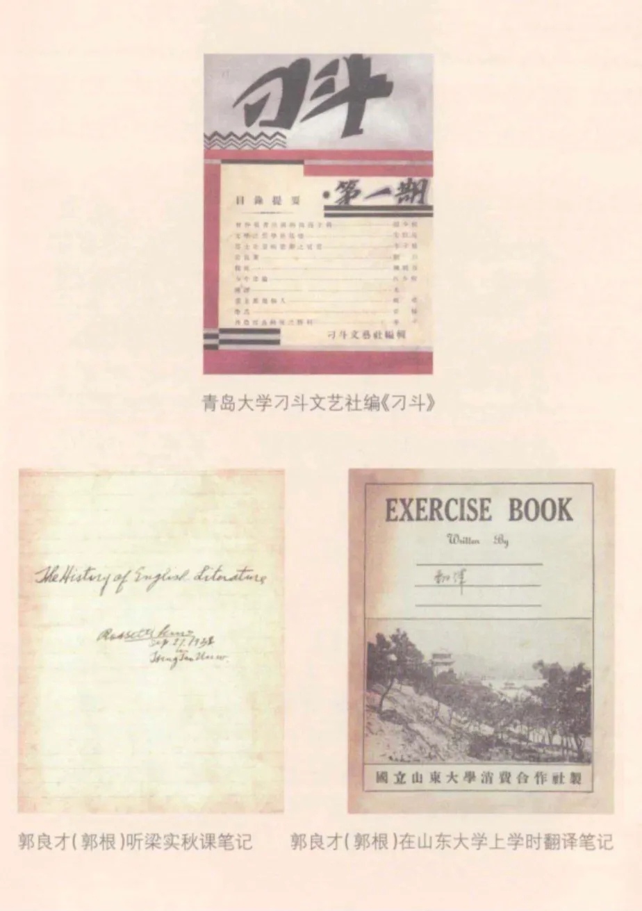 1931年秋,郭根考取了青島大學。他本來是可以直接考入北平師范大學的,但因他在學校參與政治活動,又在《校友會會刊》編發了紀念馬克思的文章,國民黨曾經派人來抓他,林礪儒校長挺身而出保護了他,但在即將畢業的最后一學期,學校卻給了他丁等操行成績,算作對學生的“特別懲戒”,這樣就斷了郭根報考北平師大的前路。青島大學是山東大學的前身(1932年后更名山東大學),學生中多數受五四運動新思潮的影響,思想開放,勇于接受新事物,勤奮向上,故學習風氣較濃厚。從師大附中到青島大學,“五四”文化、文學思潮還在綿延。而左翼文化、文學潮流又異軍突起。郭根和同學們同時汲取著兩種既有差異又相統一的思想文化資源。積極要求進步的郭根,一面接受著新銳的左翼文化思想,一面反思、克服著小布爾喬亞式的自由主義、個人主義傾向。入學的第一年,他與邵乃賢喜結連理,新婚的妻子不忍相思之苦,竟拋開北師大的學業,赴青島陪丈夫“伴讀”。