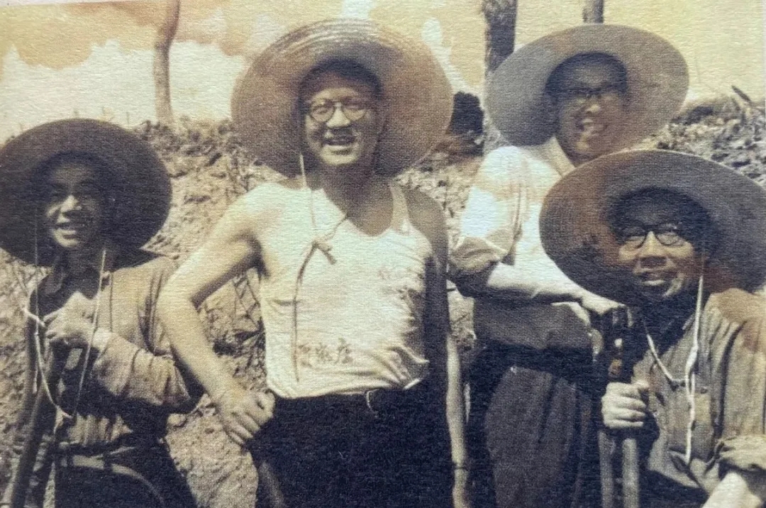 20世紀70年代初,郭根(左二)與山西大學同事在昔陽縣賈家莊勞動