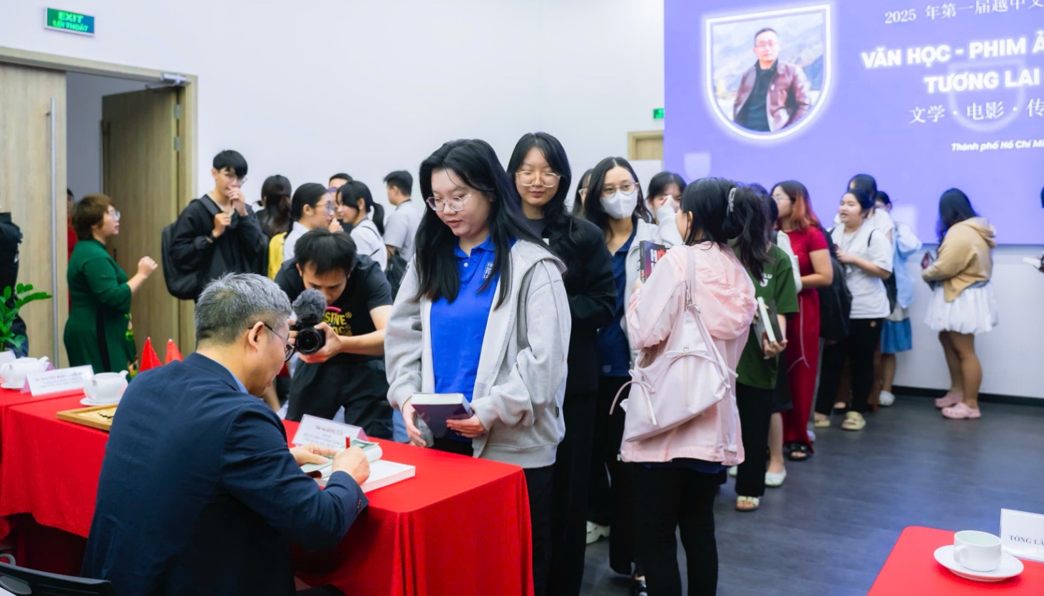 6月26日上午,東西來到胡志明市文朗大學,與越南青年讀者分享作品。他圍繞自己的作品《回響》《耳光響亮》等分享了創(chuàng)作經(jīng)歷與體會,以廣西與越南的文化親緣性舉例,指出這種親近感使作品更容易在越南讀者中引發(fā)共鳴。在現(xiàn)場,東西就文學如何走向世界、如何激發(fā)青年創(chuàng)作興趣、文學教學方法等與大家展開廣泛交流,并為現(xiàn)場書迷簽名。