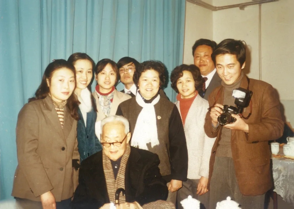 1985年文學館成立,巴金先生與中國現代文學館館員們合影