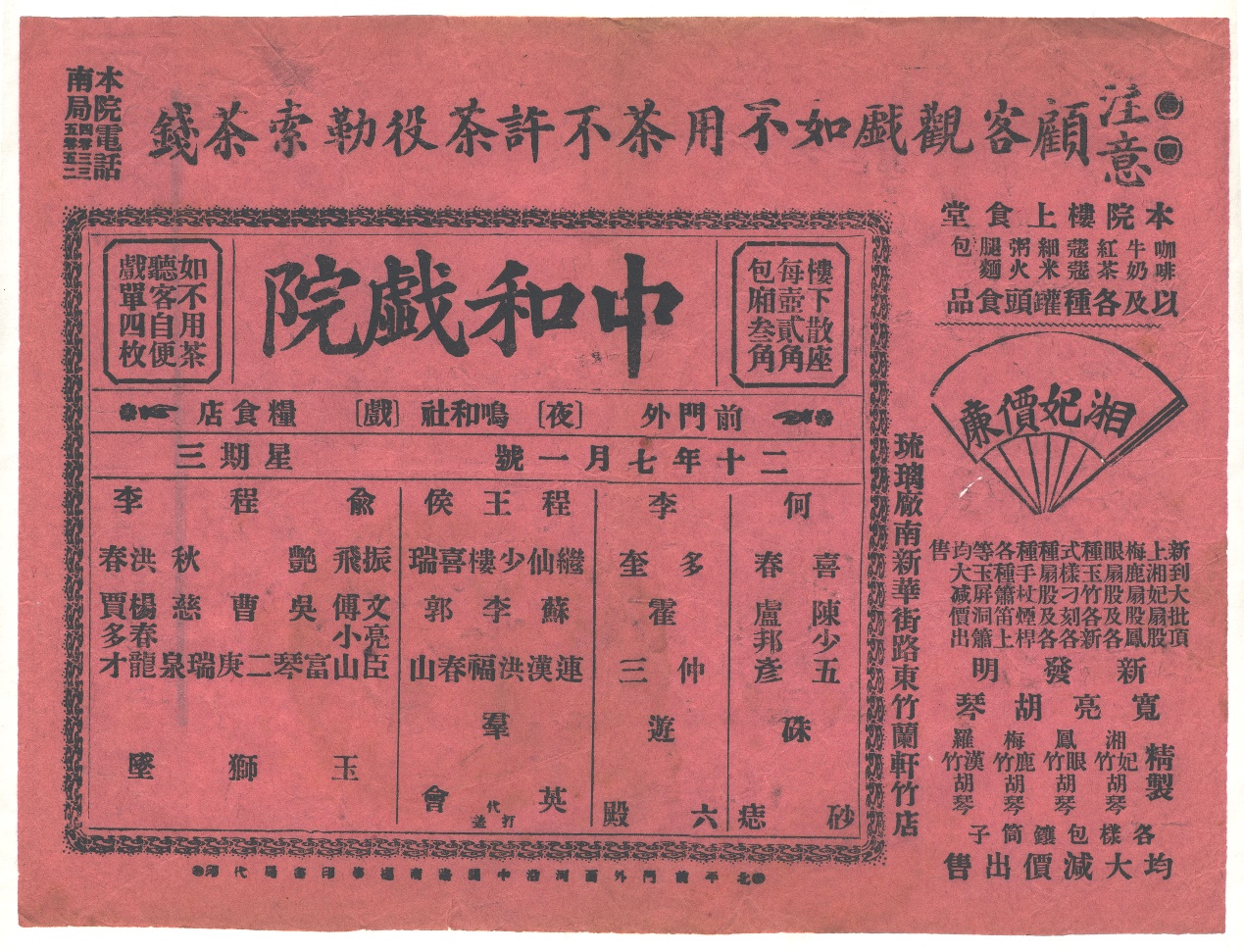 中和戲院一九三一年七月一日戲單