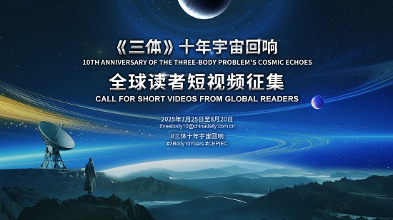 2025年正值劉慈欣《三體》系列作品海外出版十周年。中國日報網發起“《三體》十年宇宙回響全球讀者短視頻征集”活動。活動以“向宇宙發射人類文明的聲音”為主題,邀請參與者通過短視頻模擬“宇宙廣播”,傳遞對《三體》的致敬與思考。通過科幻這一跨越文化的共同語言,促進文明對話與人類命運共同體理念的傳播。?