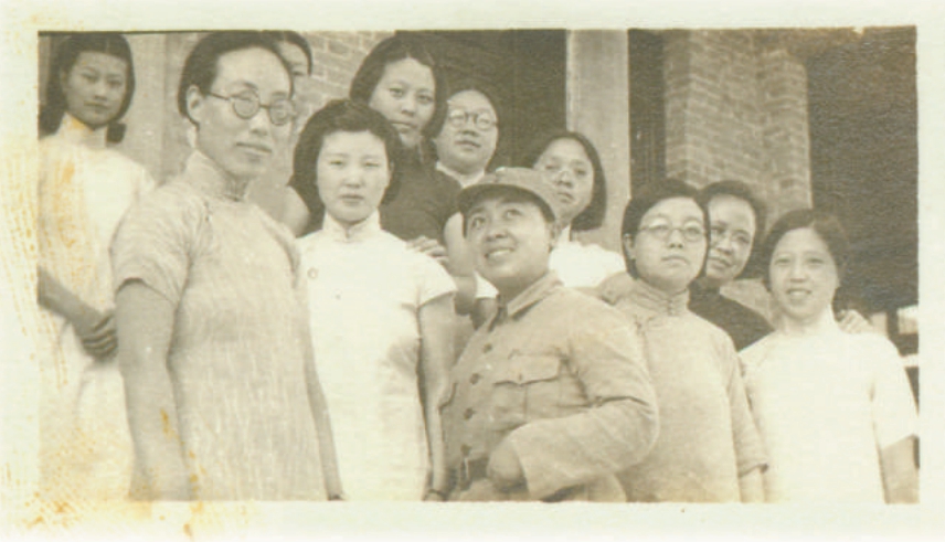 陜西婦女界代表與丁玲(著軍裝)合影,丁玲右后方為韓雅蘭,抗戰初期攝于西安。