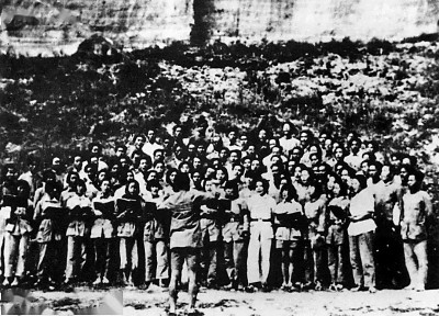 冼星海組織延安魯迅藝術(shù)學(xué)院的學(xué)生排練《黃河大合唱》。資料圖片