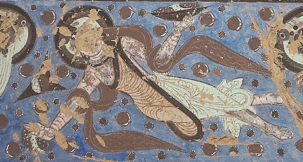 新疆地區現存最早的壁畫發現于若羌縣附近屬于古樓蘭、鄯善地區的米蘭佛寺遺址,這批壁畫以繪于佛寺護壁上具有古希臘羅馬特征的有翼“天使”而聞名于世。它的發現者英籍匈牙利探險家和考古學家奧里爾·斯坦因如此描述了自己初見這批繪畫時的驚訝之情:“我不禁為之大吃一驚!在亞洲腹部中心荒涼寂寞的羅布淖爾岸上,我怎么能夠看到這種古典式的天使呢?”“這些壁畫的構圖和色調最接近古典的作風,完全睜開的大眼睛靈活的注視,小小微斂的唇部的表情,把我的心情引回到埃及托勒密和羅馬時期木乃伊墓中的希臘少女以及青年美麗的頭部上去了”。這種印象式的描述不足以成為考古溯源或學術研究的依據,但一定程度地表達了米蘭佛寺形象給現代觀者的印象以及疑惑:這是一批帶有較強希臘羅馬古典藝術風格的繪畫,但是,它們怎么會以佛畫的形式出現在今天看來遠離希臘文明影響范圍的西域之地?
