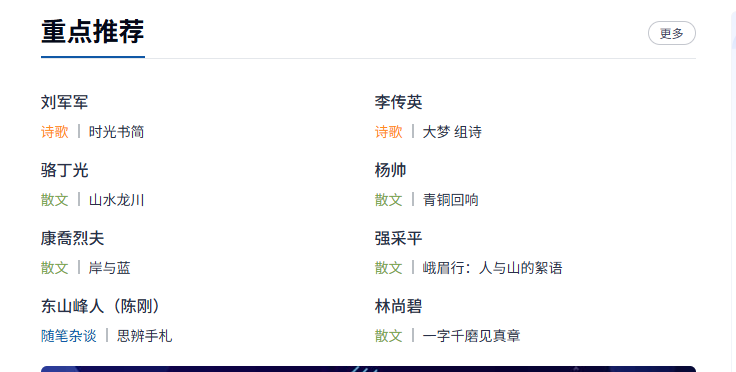 “重點推薦”欄目可以完整顯示原創頻道每日優選的8篇作品。
