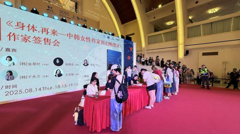 8月14日,中韓女性科幻作家現(xiàn)場簽售會在2025上海書展中心活動區(qū)舉辦。(受訪機構(gòu)供圖)