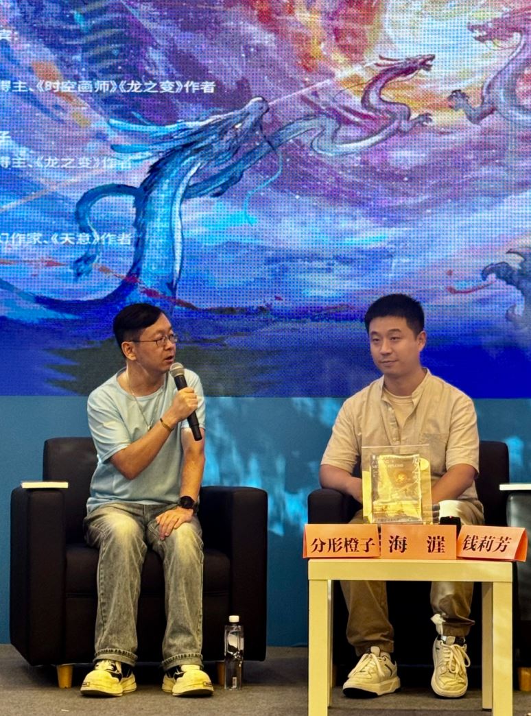海漄和分形橙子在2025年上海書展發(fā)布新書《龍之變》。