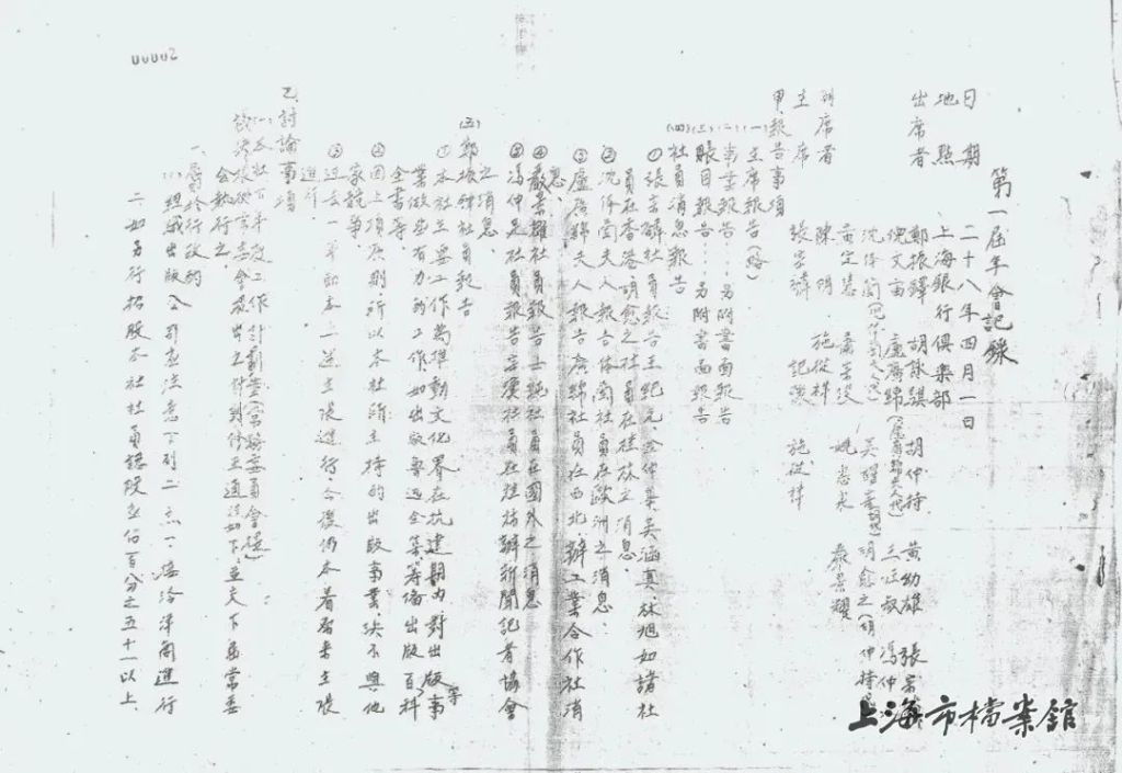 幸運的是,上海市檔案館保存有兩件復社的原始檔案,可窺一斑。檔案一為復社社約,一為復社第一屆年會記錄(1939年4月1日)。