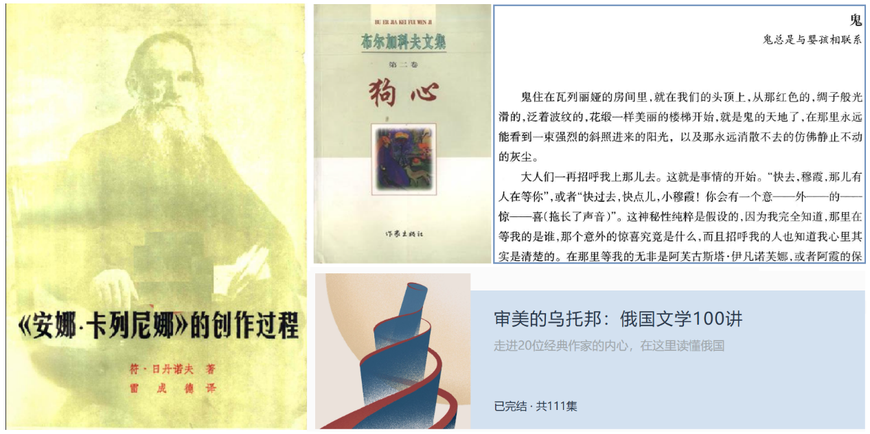 阿舍(作家,著有《托爾斯泰的胡子》《阿娜河畔》等):讀俄國和蘇聯(lián)文學(xué),我常有一種吃不消的感覺,好比一個脾胃虛弱的人承受不住補品里的滋補,非要溫和少量地循序而進(jìn),方得養(yǎng)分之益。所以,相比其他國家,俄蘇作品雖讀得稍多,卻從來不敢對之妄言,因為即便是讀過的作品,至今仍只是從自己敏感、共情的那一個方面析出一小部分,如同從一片森林里撿出一枚樹葉,常有難以穿越的絕望感。不過,在明白憑一己之力難以深入這片森林之后,我也幸運地不斷遇到能夠帶我繼續(xù)向前的“好向?qū)А保@大概就是書籍與人的緣分。比如,在重讀《安娜》后,我從朋友那里得到了《〈安娜·卡列尼娜〉的創(chuàng)作過程》這本書,從而領(lǐng)悟到這部作品在結(jié)構(gòu)上的建筑美學(xué)。比如,讀完《靜靜的頓河》之后,正好劉文飛老師在“看理想”開了《俄羅斯文學(xué)一百講》的音頻課,聽完肖霍洛夫這一講,我得以看出《戰(zhàn)爭與和平》《靜靜的頓河》二者之間的傳承關(guān)系,又在后者當(dāng)中擷取到超越前者的指引——樸素日常里的力量與深情。還有茨維塔耶娃的散文,她竟以《鬼》為題,確鑿可信地寫出了一位女性的精神成長之路,這對以“寫實”為己任和評判標(biāo)準(zhǔn)的當(dāng)下散文可謂莫大挑釁。布爾加科夫在1925年寫出《狗心》,對比當(dāng)下讓人眼花繚亂的科幻作品,《狗心》的精神指向依然超前。精神與情感世界的澎湃洶涌,是老派的俄蘇文學(xué)給予我的“關(guān)鍵所在”,我仰望并需要,又因為畏懼她的光芒不時躲開。