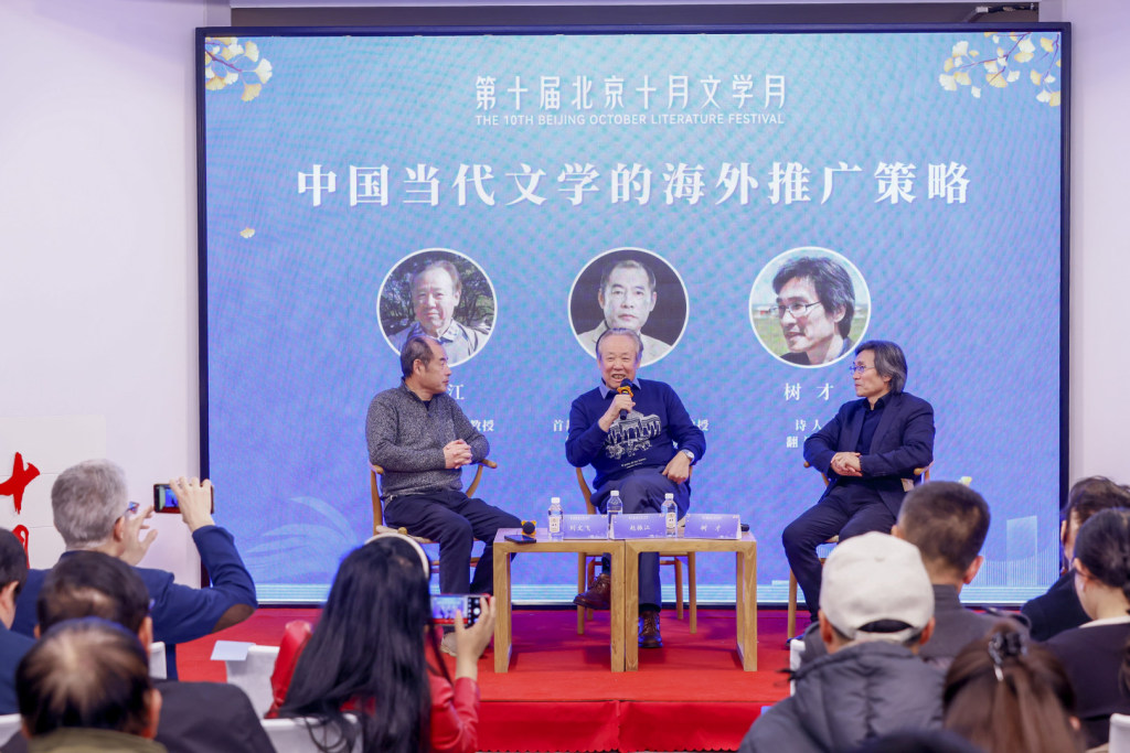 圍繞“中國當代文學的海外推廣策略”的話題,北京大學西語系教授趙振江、詩人、翻譯家樹才進行了對話。