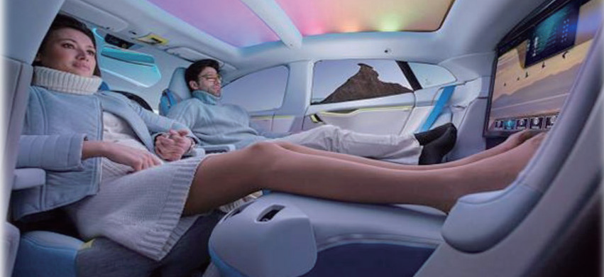 當(dāng)夕陽的余暉溫柔地給昆明的城市天際線描上一道金邊,你關(guān)上電腦,乘坐電梯下樓。一輛線條流暢的雙層自動駕駛房車已經(jīng)停在街邊,等待你的到來。掃描你的臉之后,車門緩緩開啟。